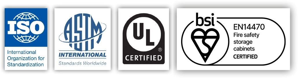 We have designed the Lithium Safety Store™ to exceed the highest standards of fire safety and containment that exist. It is certified to: