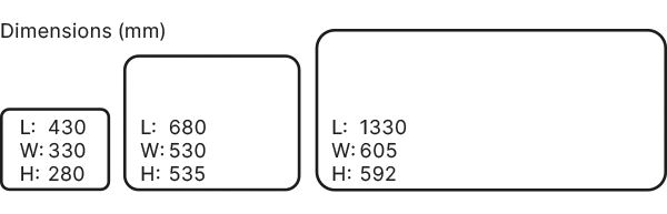 With large side handles and roller wheels, they are easy to manouver and can also be used to transport lithium ion products safely.